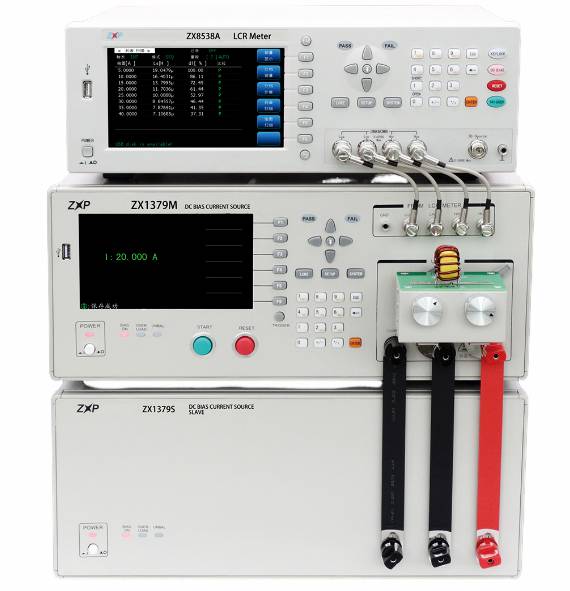 ZX802疊加電流測試系統由一臺ZX8538A、一臺ZX1379M和n臺ZX1379S組成。ZX1379M直流偏置電流源,可通過標準RS232C接口方便的與外部LCR表連接。***多可以疊加8臺ZX1379S,輸出電流達225A,同時輸出電壓高達11V。